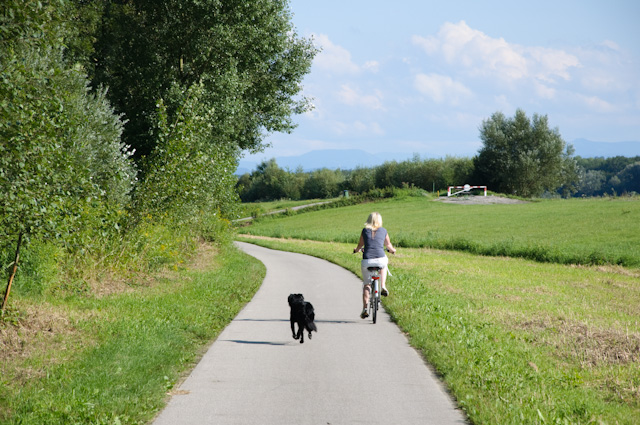 Scesi in paese abbiamo riagganciato le borse che ci aspettavano alla pensione e siamo ripartiti lungo la ciclabile verso Enns, una cittadina che volevamo visitare. Era da poco passata ora di pranzo e pedalando ci era tornata fame. Un piccolo bar birreria, offriva un menù turistico a 5,90€, c'erano un primo, un secondo ed una bibita ma dato l'orario, erano appena le due ed un quarto, era rimasto un solo unico menù, così per farci contenti la signora del locale ci ha offerto una viennese con patatine e bibita allo stesso prezzo del menu. Ci voleva un pochino di frittura per pedalare in leggerezza al pomeriggio e l'abbiamo presa e divorata in pochi minuti. Una consultatina alla guida per capire cosa c'era da vedere ad Enns e siamo ripartiti.