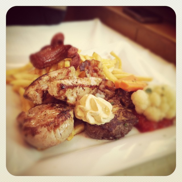 La grigliata era buona, niente a che vedere con la carne della sera precedente e pure il piatto tirolese, a parte i ravioli, era interessante,